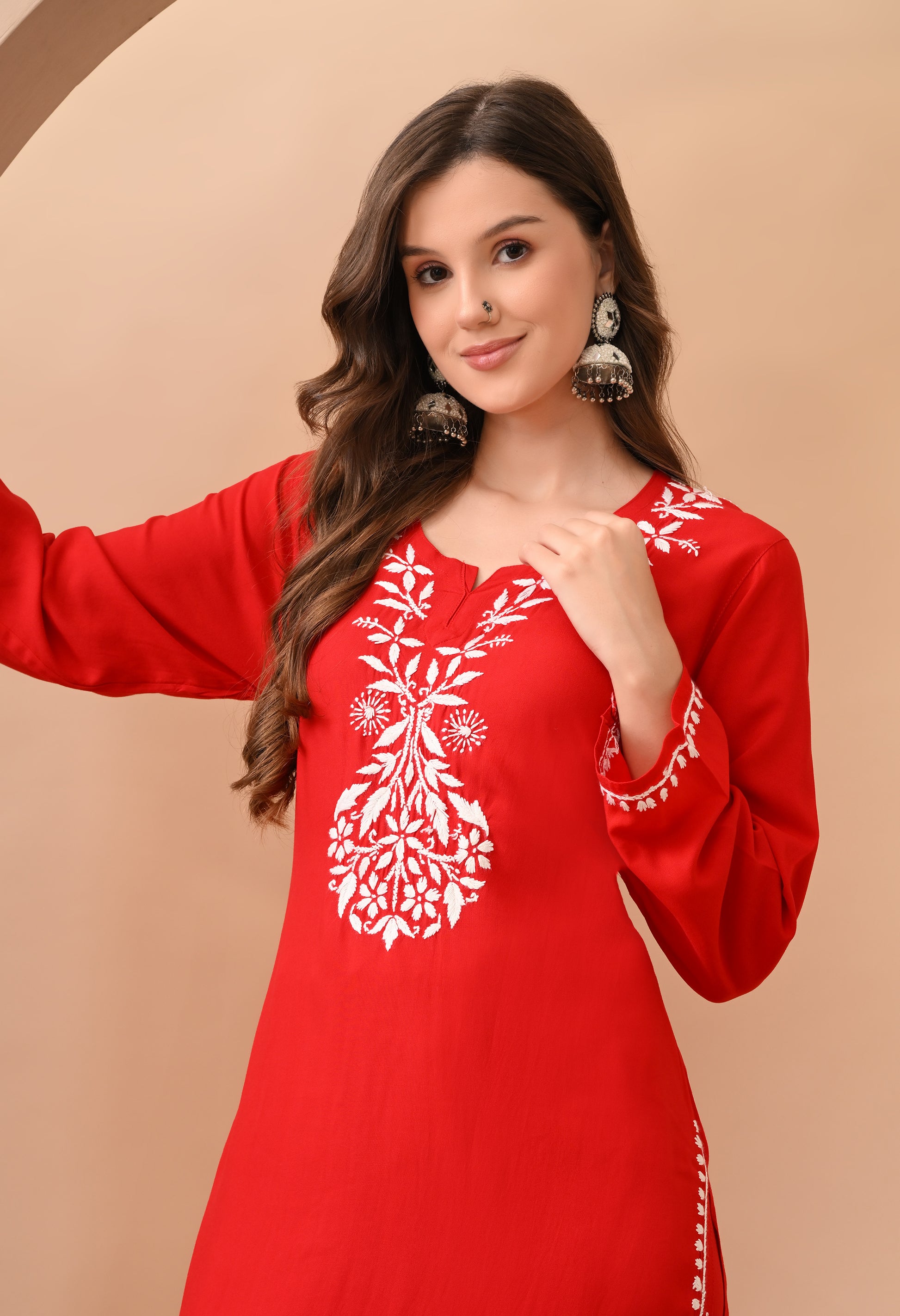 - Ethnic motifs with traditional Lucknowi chikankari