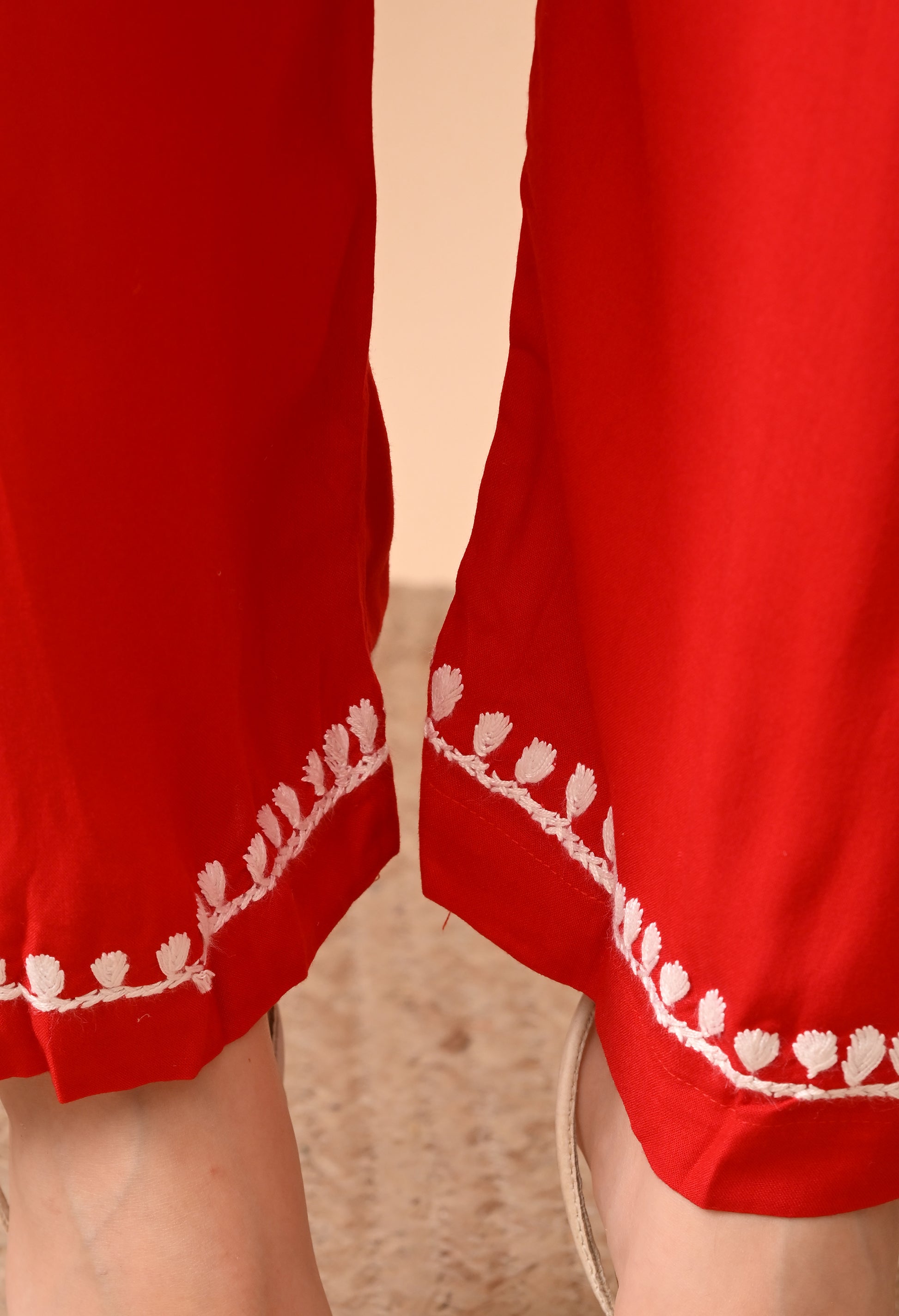 - Red & white & embroidered kurta with palazzo