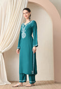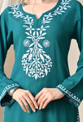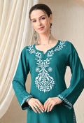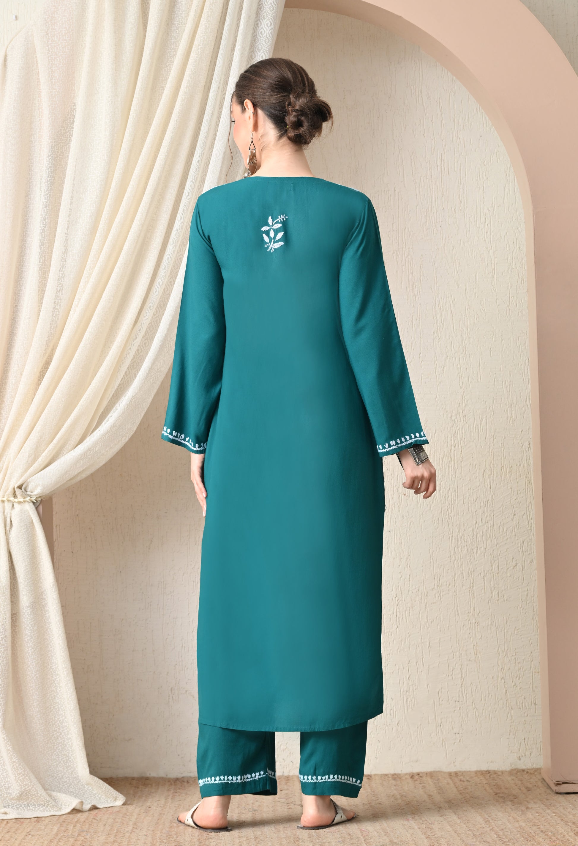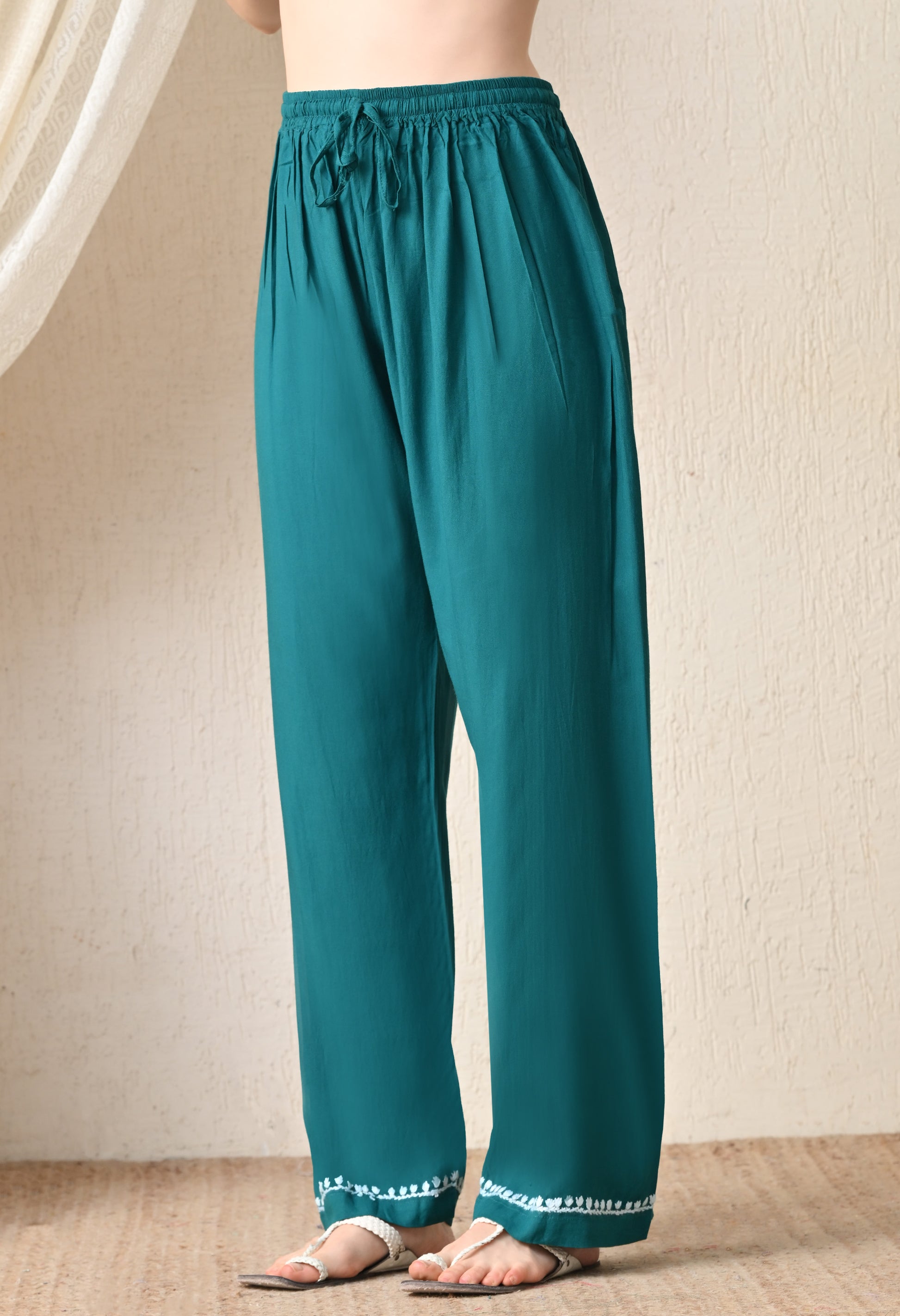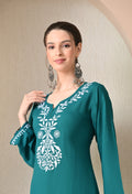 Hand-embroidered Lucknowi Chikankari Kurta Plazo Set –Teal Green