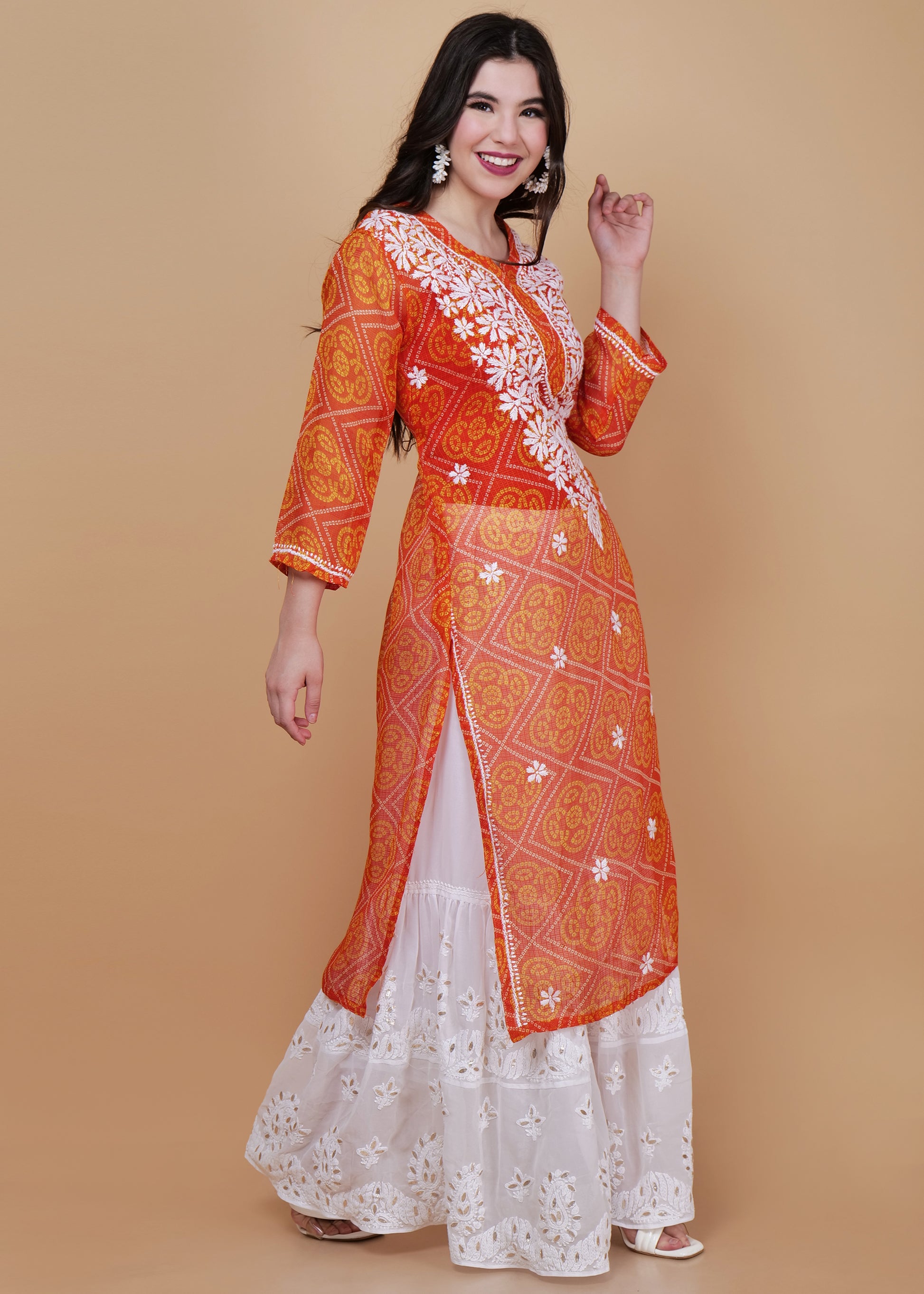 Handcrafted Kota Chikankari Straight Kurta - Orange