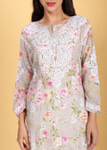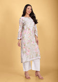 Beautiful Hand embraided Mulsin printed Straight Kurta is available in 4 colours with 100% Lucknow handmade chikankari embroidery.