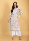 Beautiful Hand embraided Mulsin printed Straight Kurta is available in 4 colours with 100% Lucknow handmade chikankari embroidery.