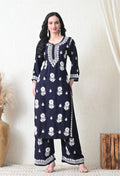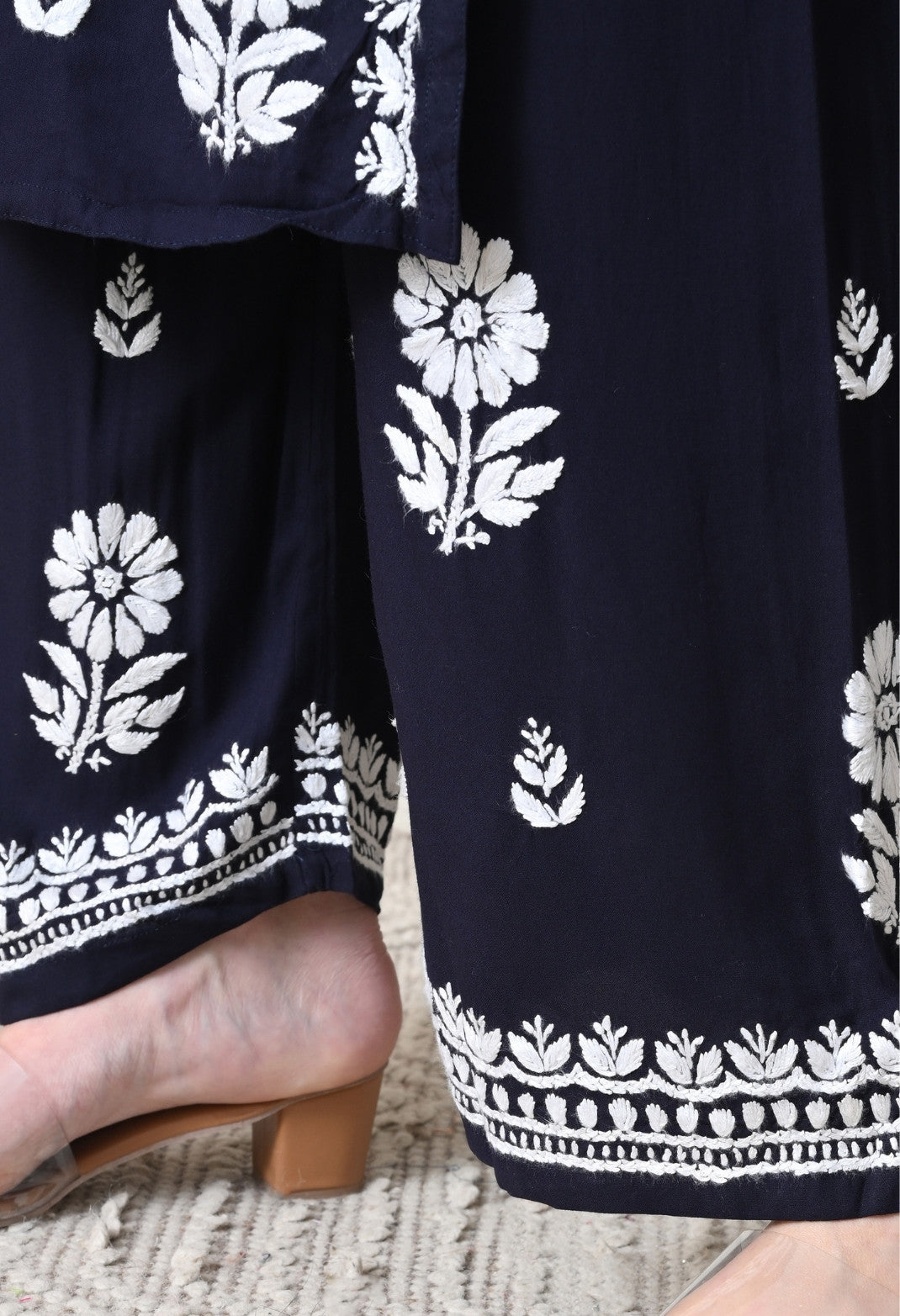 Navy Blue Rayon Hand Embroidered Chikankari Kurta & Palazzo Set