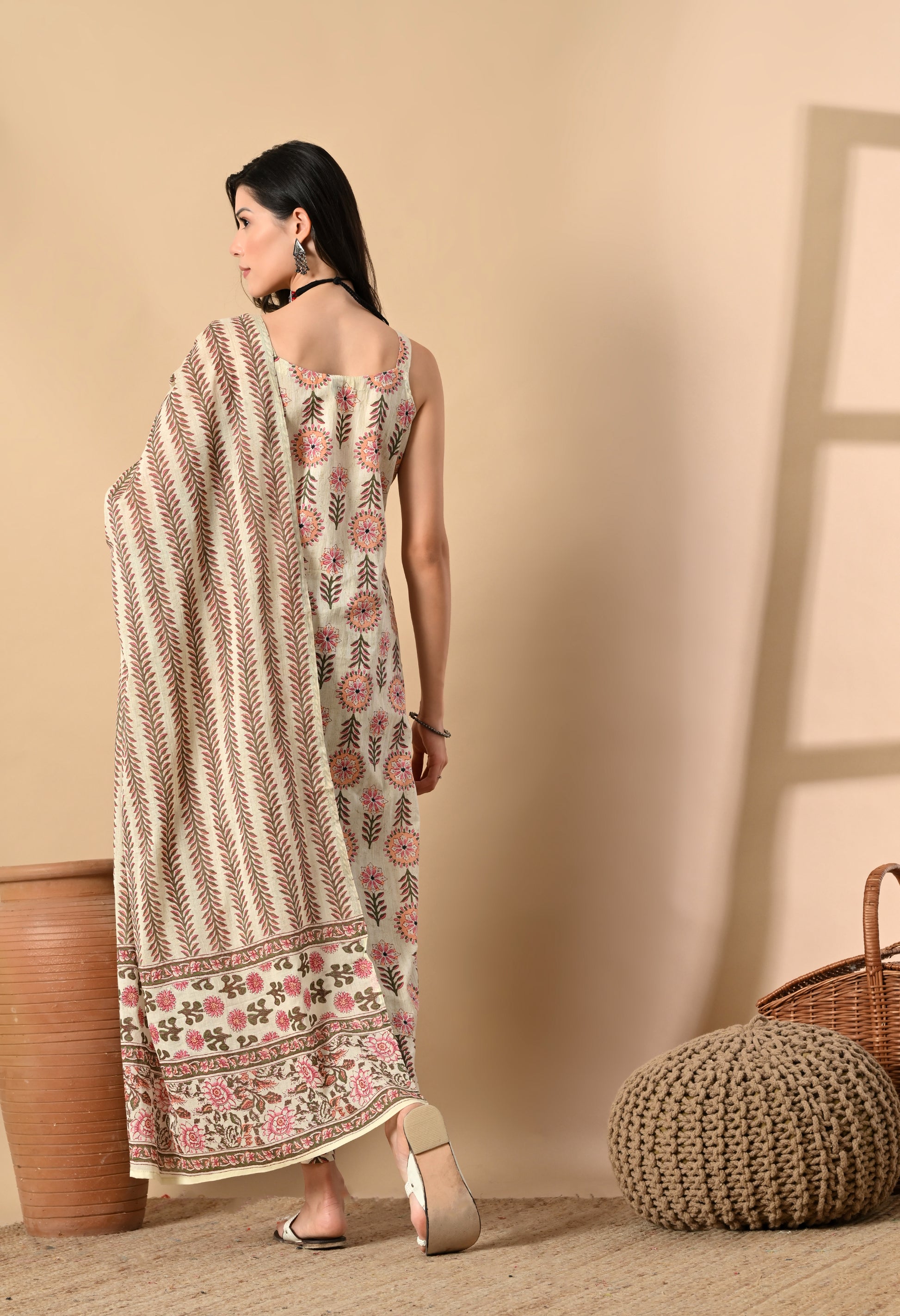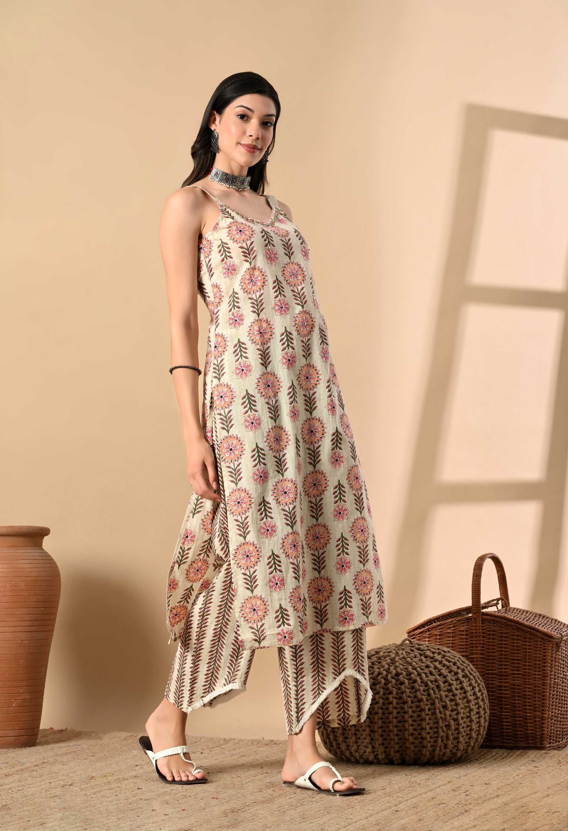 Elevate your ethnic wardrobe with this elegant 3-piece cotton set featuring a trendy noodle strap kurti, a stylish fish cut palazzo, and a matching dupatta. Crafted from breathable, high-quality cotton, this set is adorned with delicate sitara (sequin) work, adding a subtle sparkle perfect for festive occasions or casual outings. The noodle strap kurti lends a modern touch, while the palazzo's unique fish cut silhouette offers graceful movement and a flattering fit. Whether you're attending a daytime event or a casual evening gathering, this ensemble promises both comfort and charm.