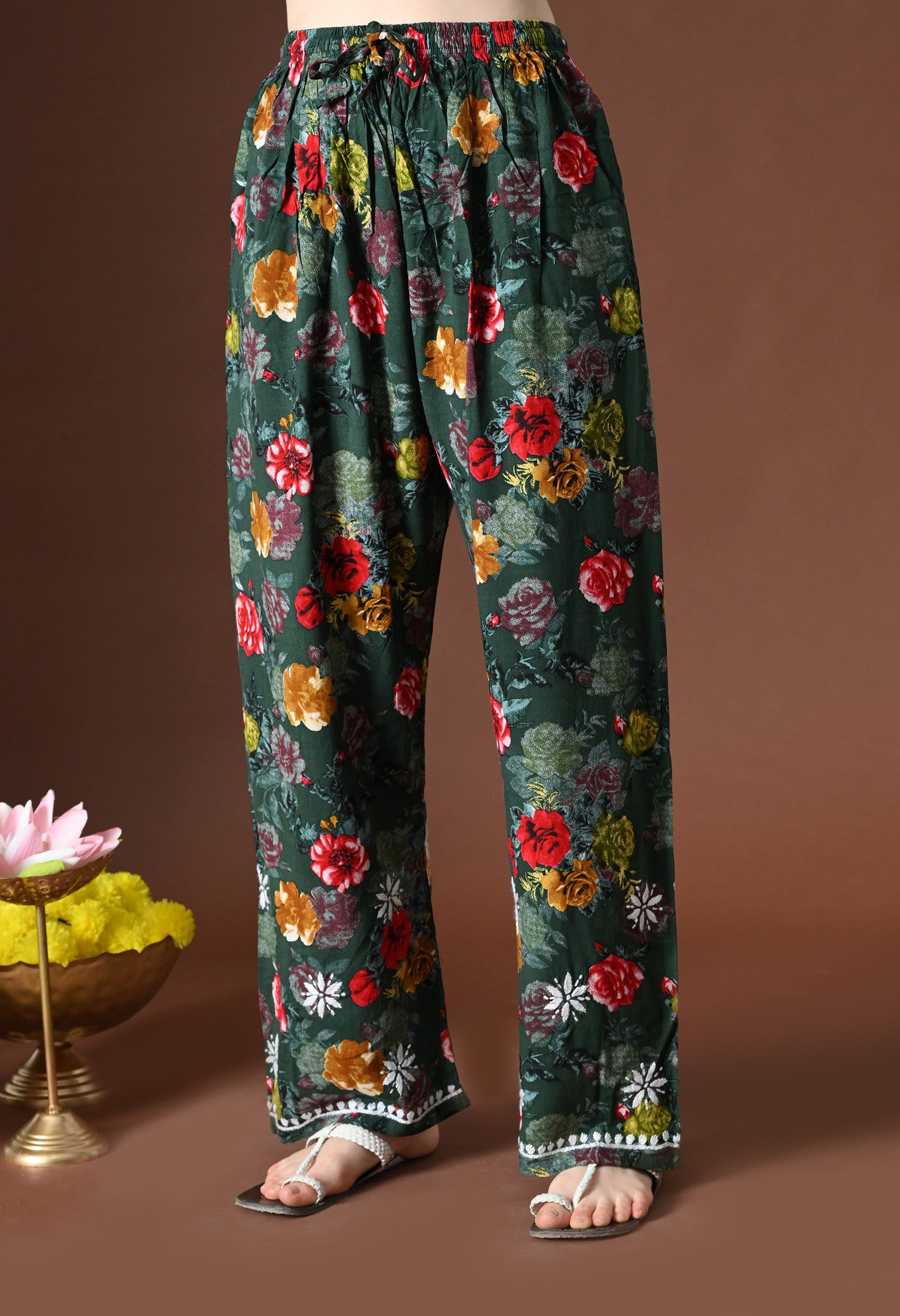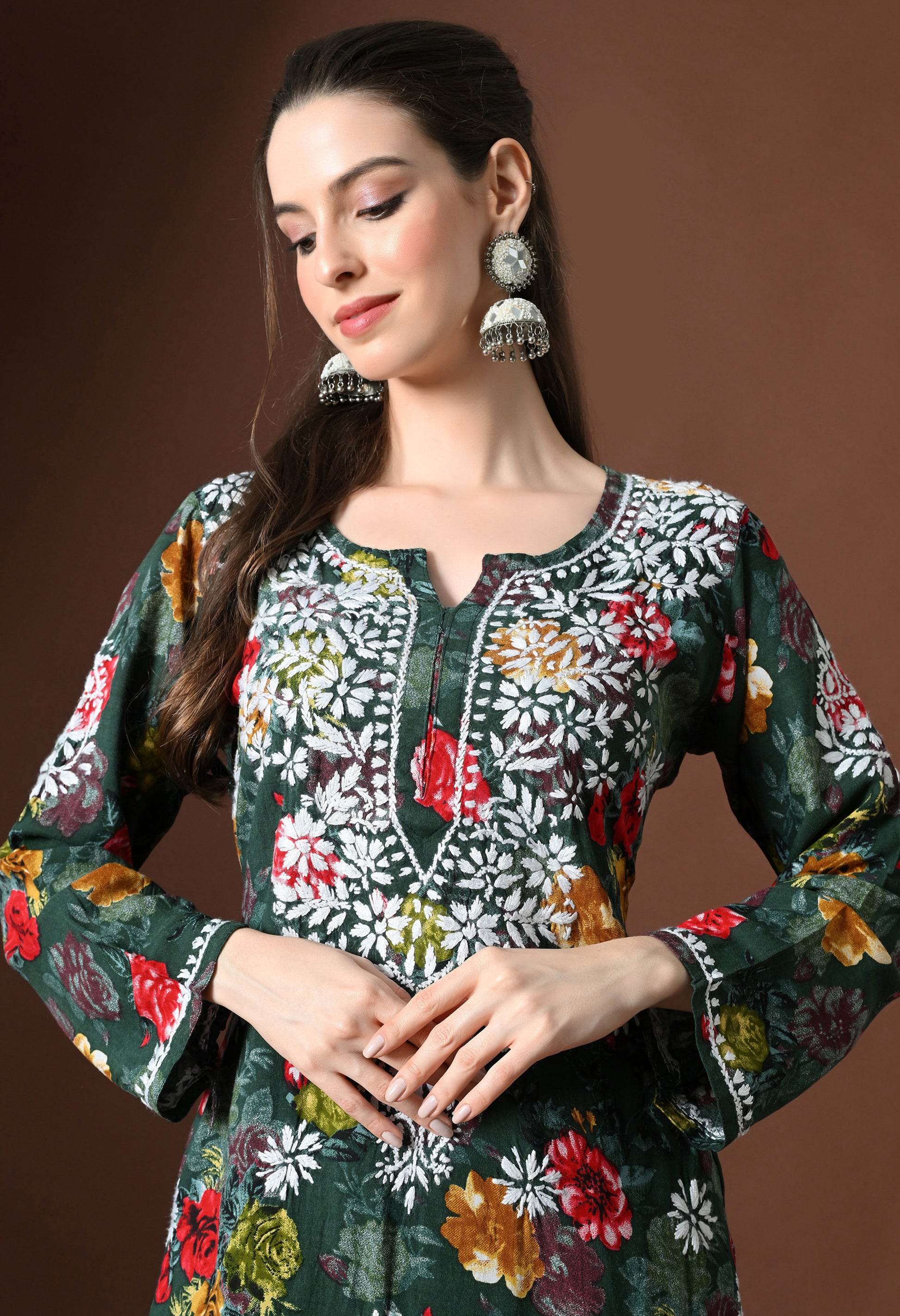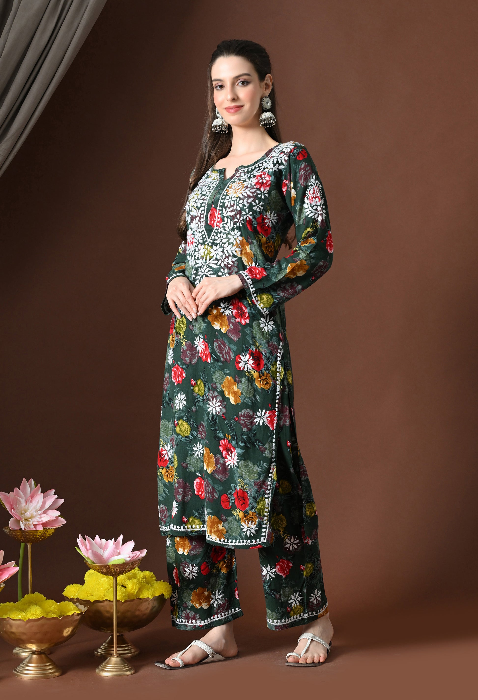 Olive Charm Rayon Floral Chikankari Set