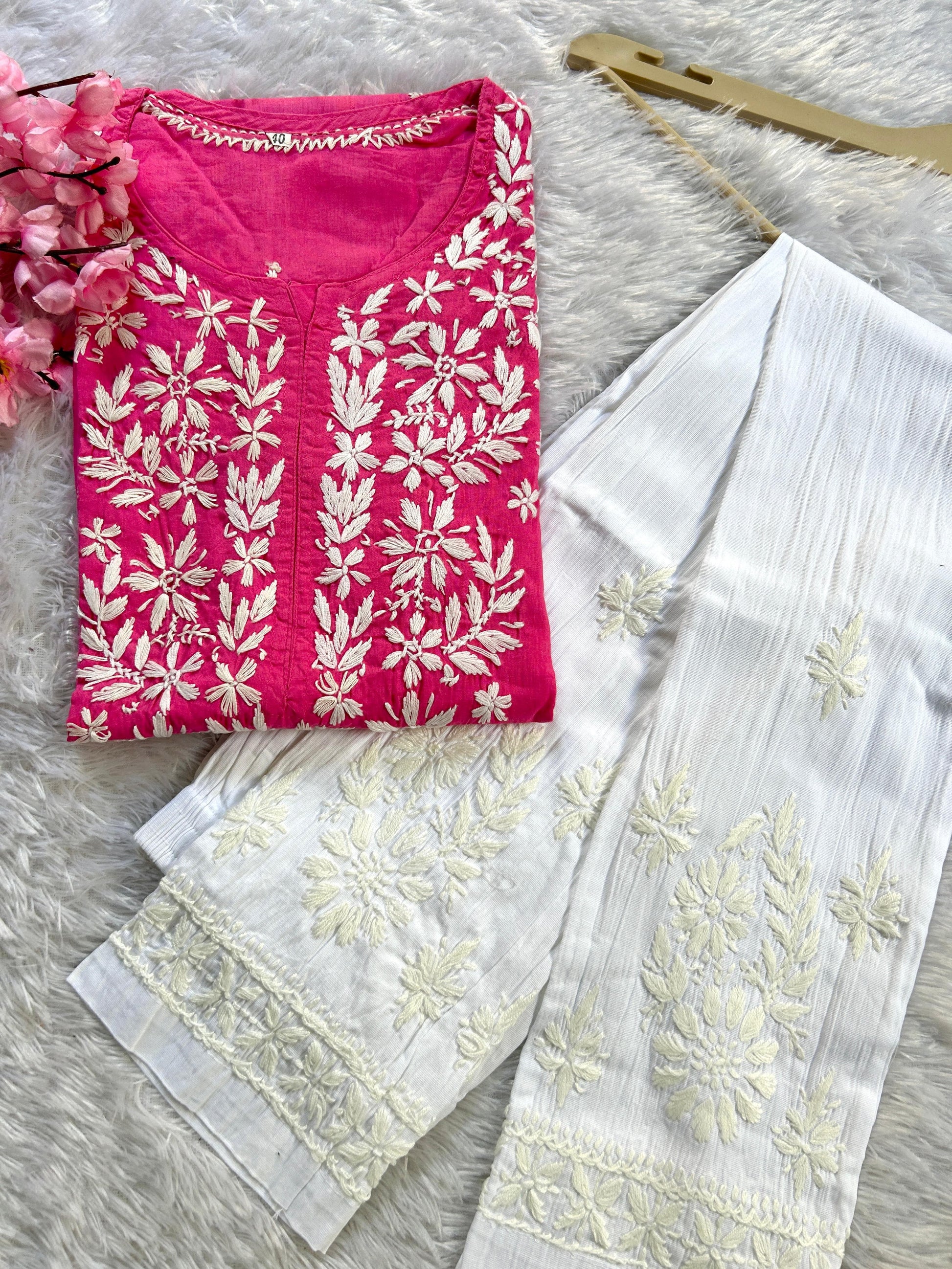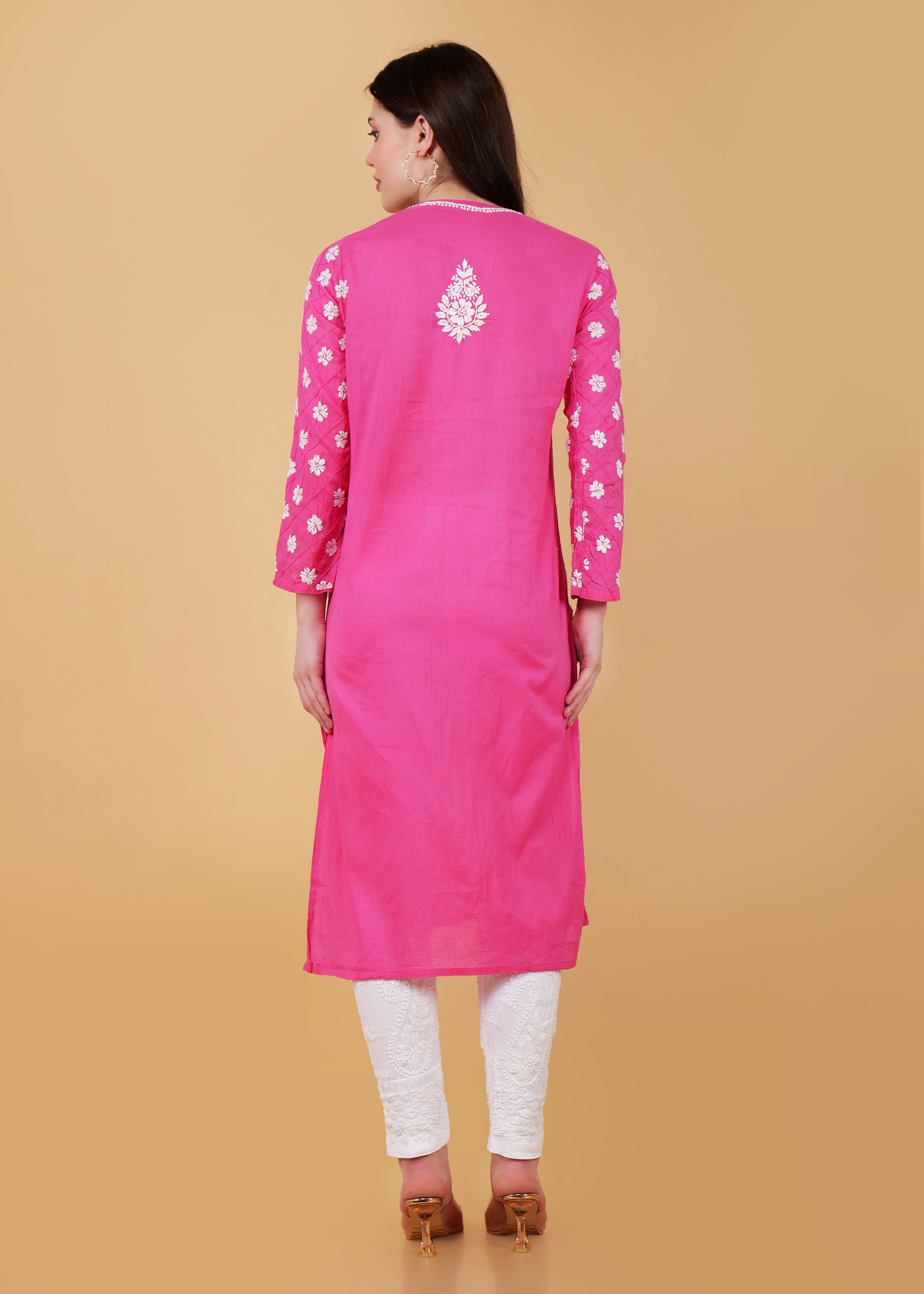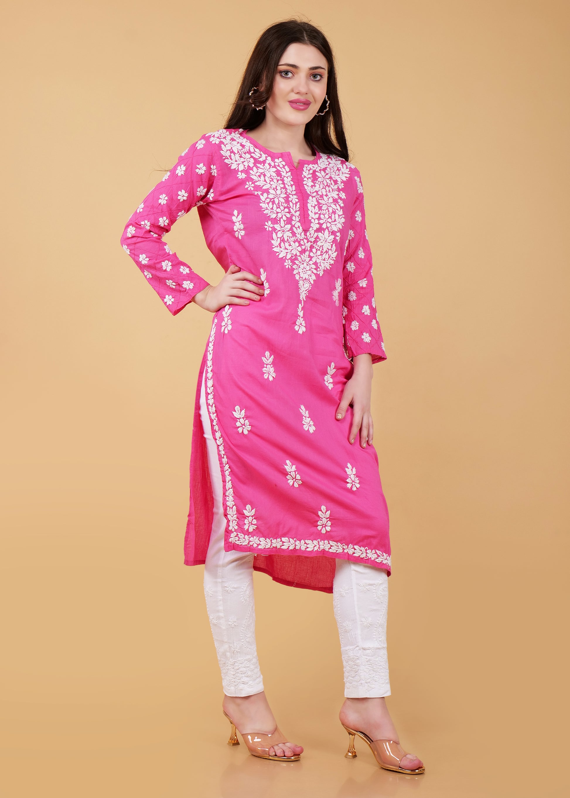 Pure Cotton Hand Embroidered Chikankari Kurta -Pink