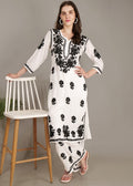 Pure Modal White & Black Hand Embroidered Lucknow Chikankari Kurta Plazzo set