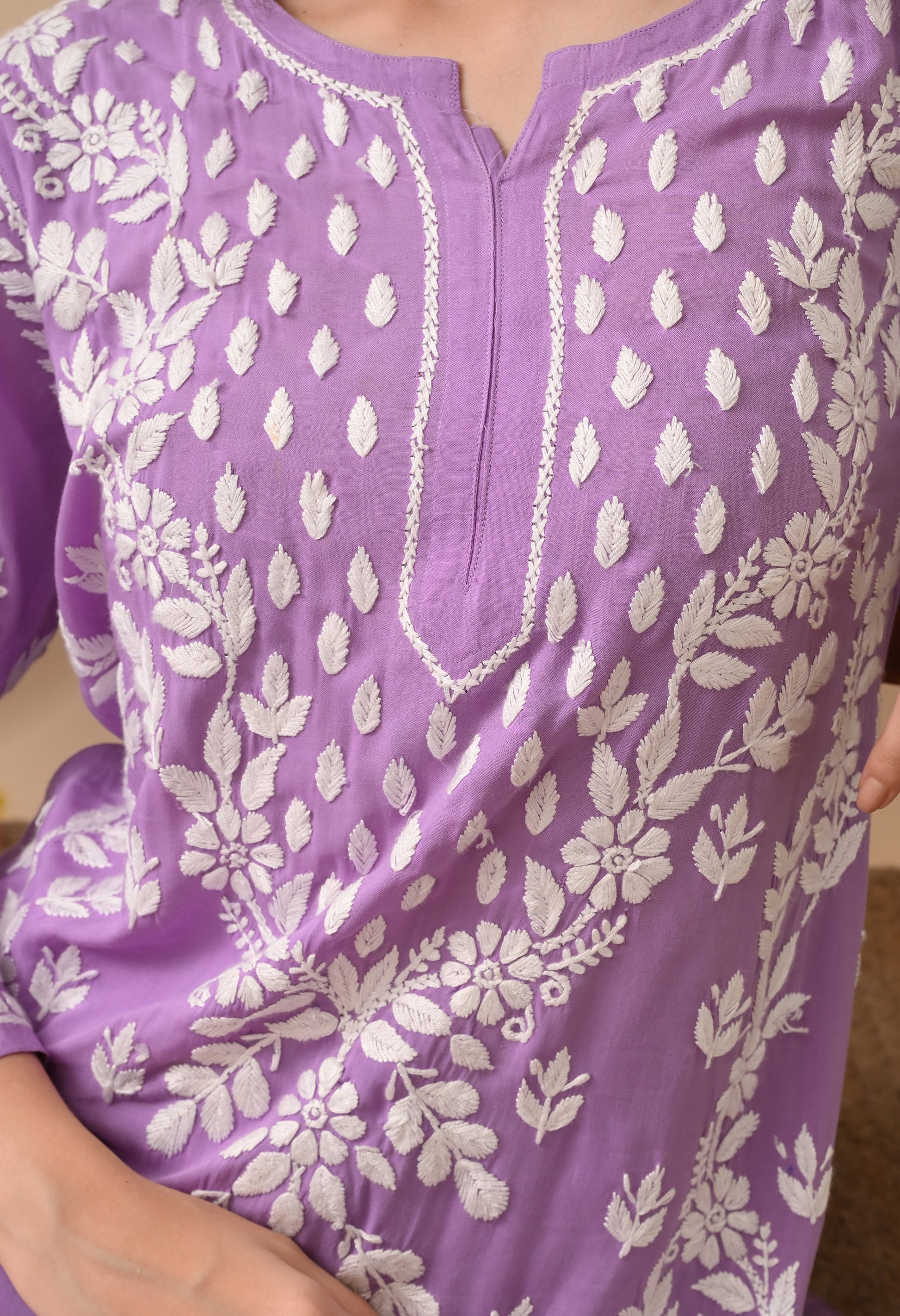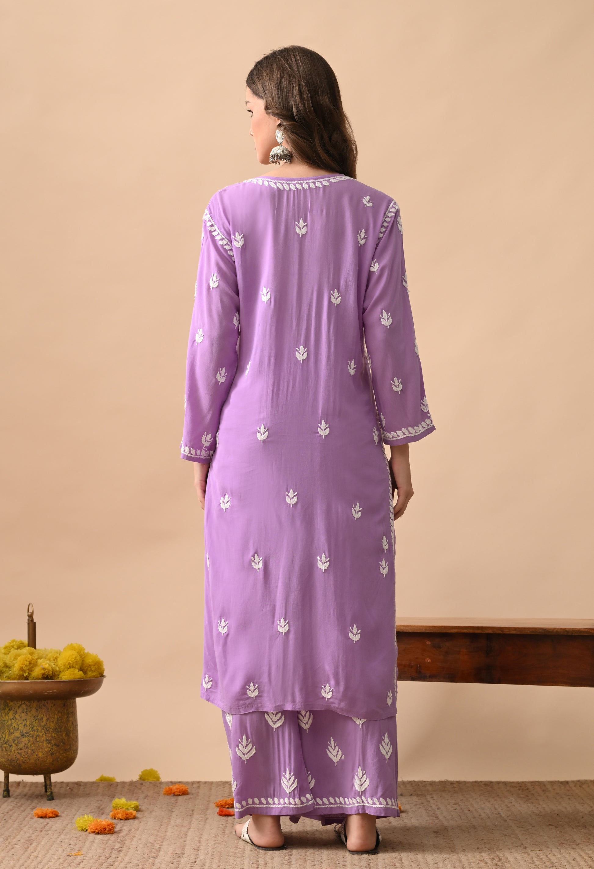 Purple Modal Hand-Embroidered Chikankari Kurta Pant Set