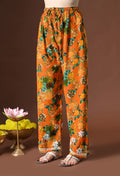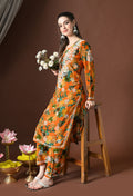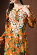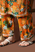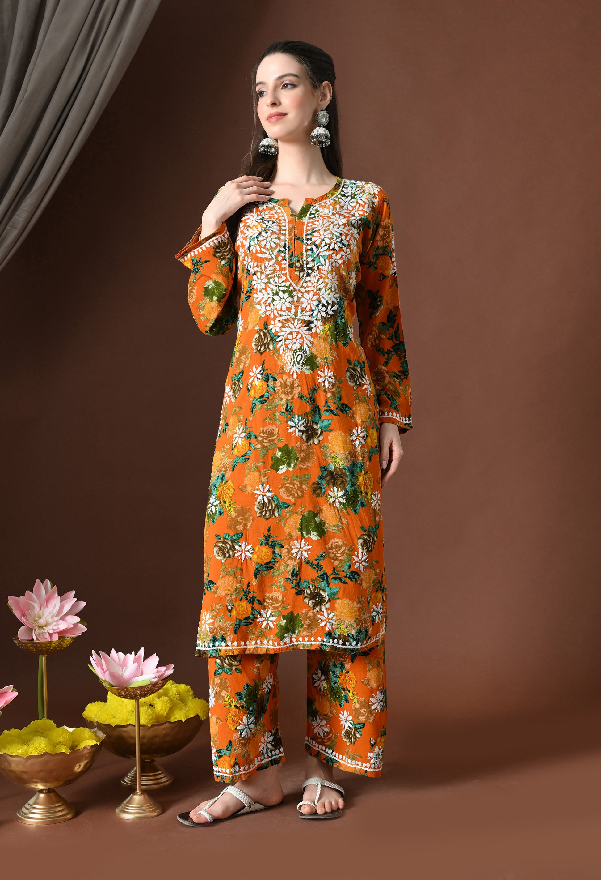 Saffron Blossom Printed Rayon Chikankari Kurta with Pants