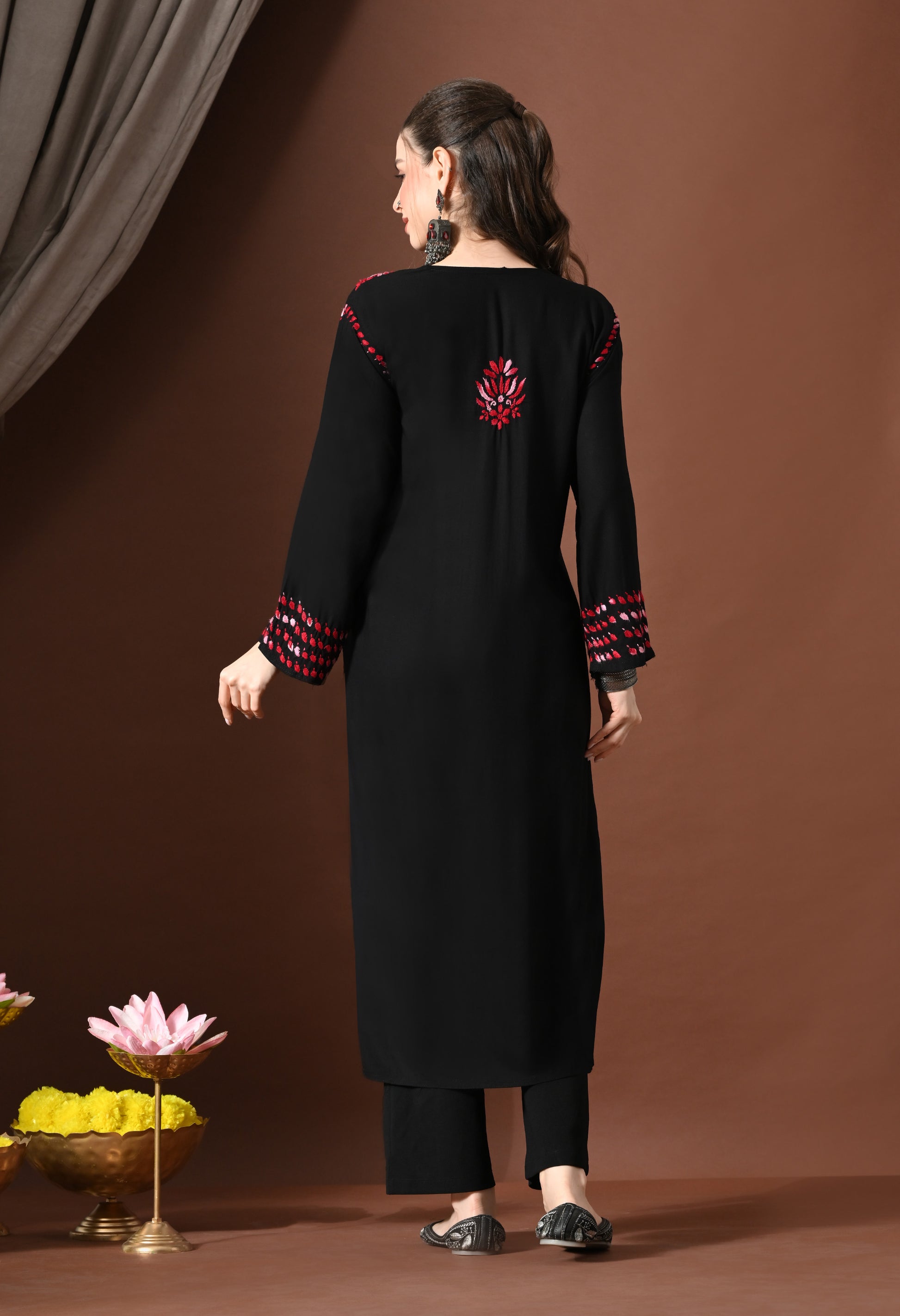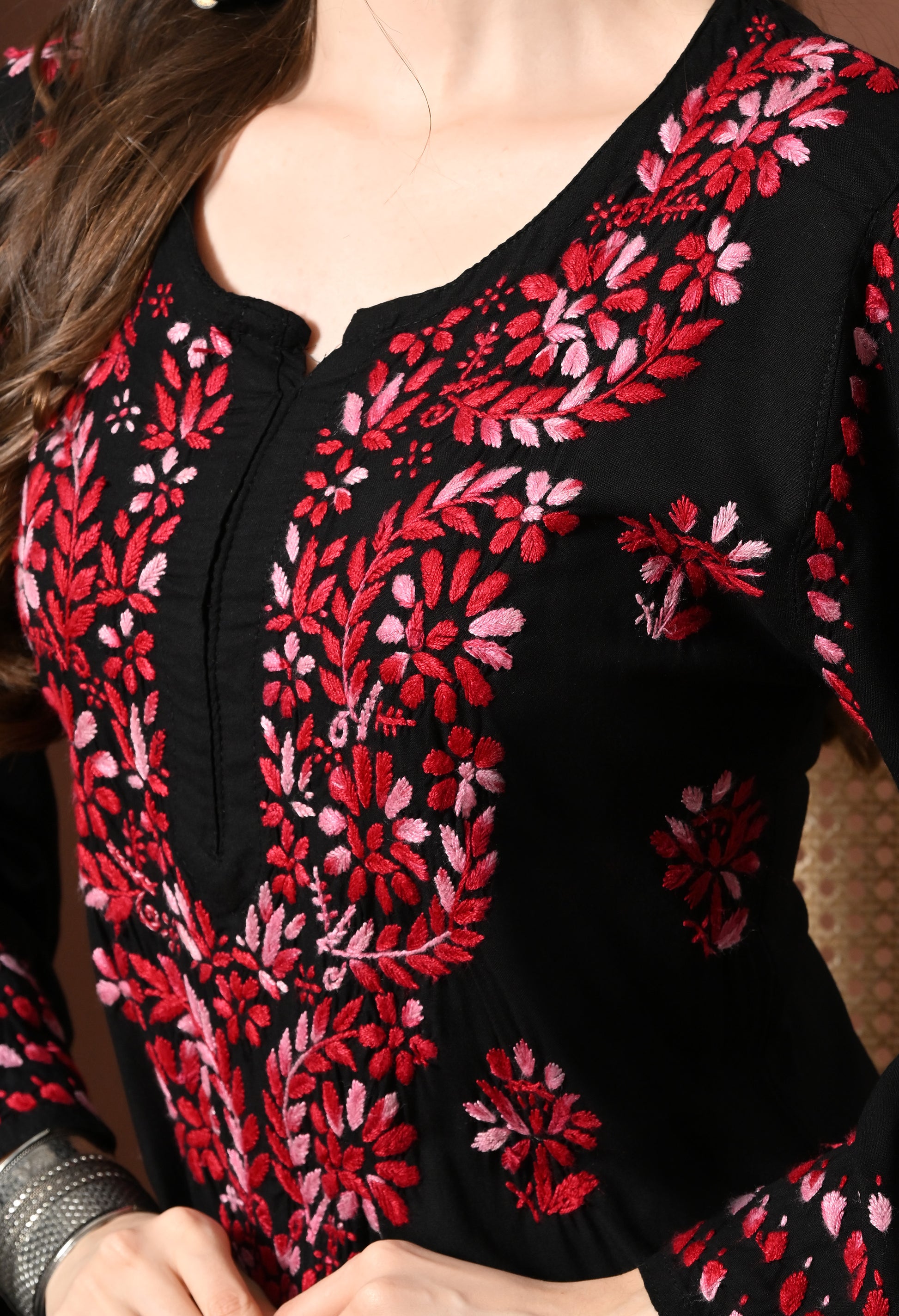 - Traditional hand-embroidered chikankari