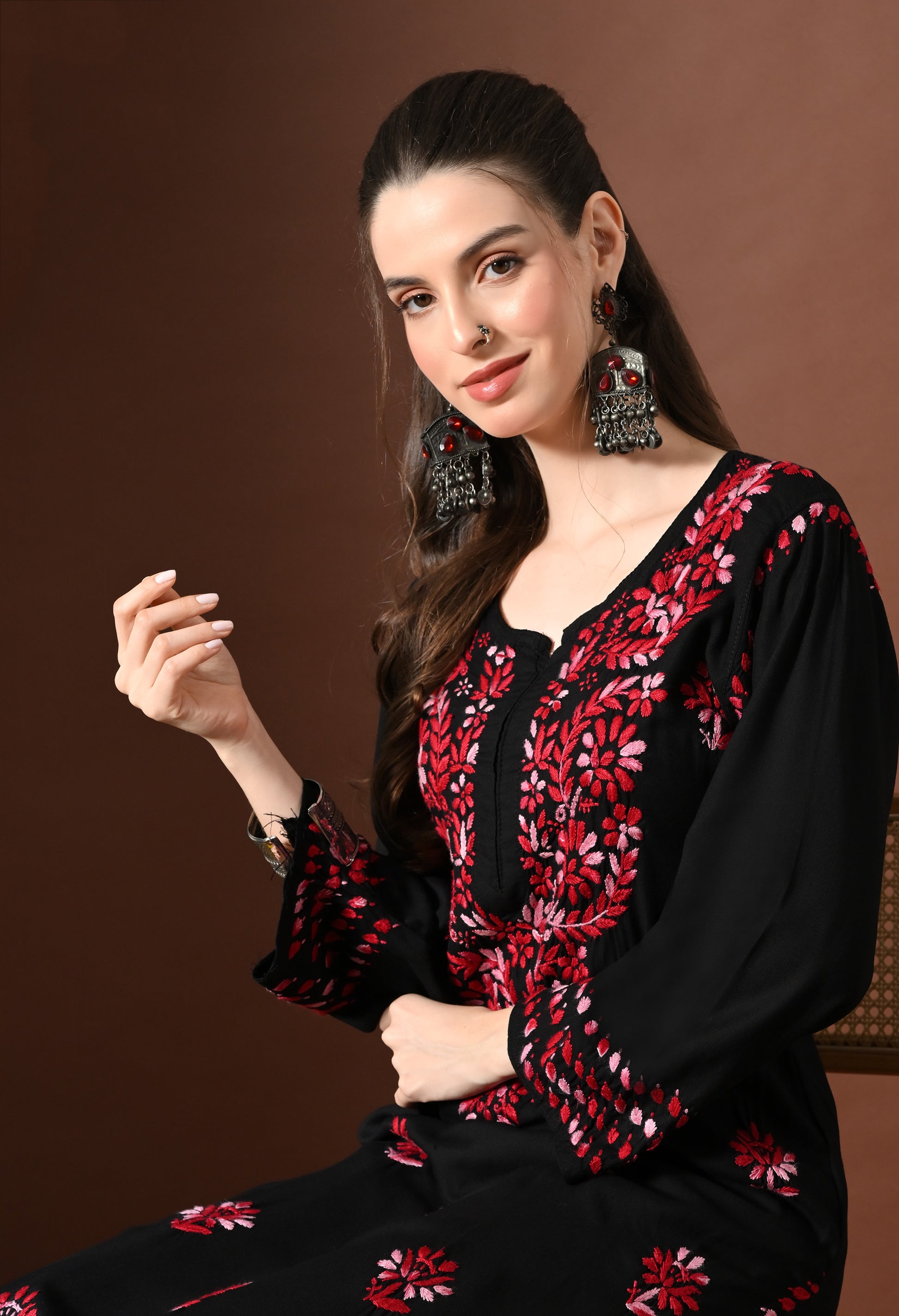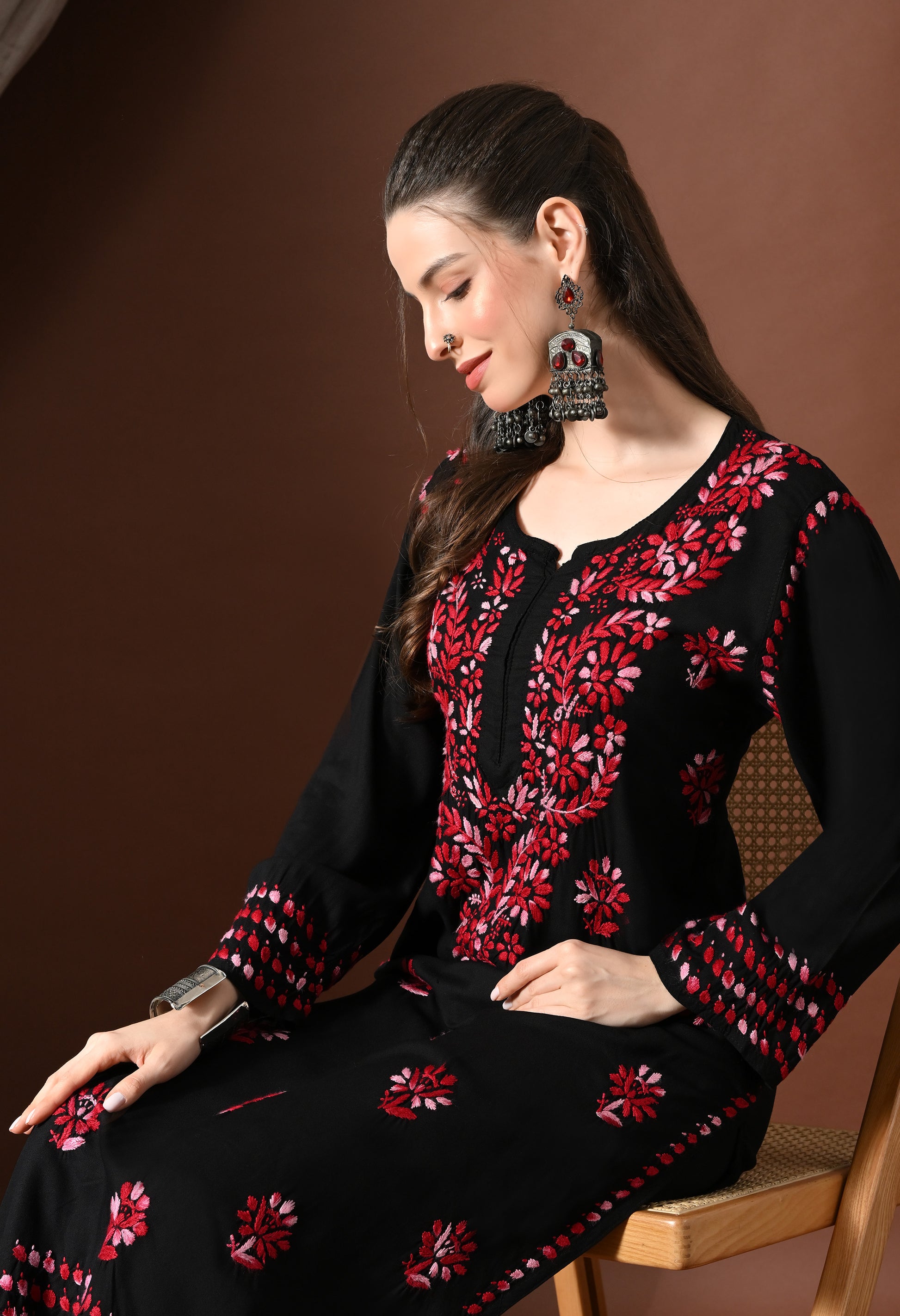 Syrish Elegance Handcrafted Rayon Chikankari Set – Red
